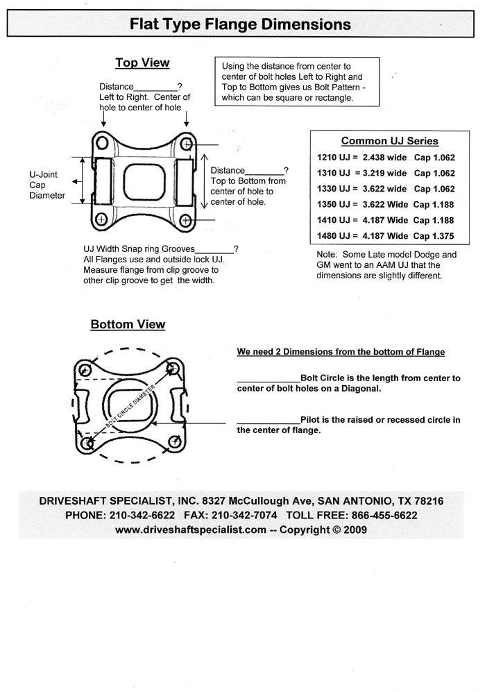 In this section you will find the proper ways to Measure for Driveshaft Fitment on all vehicles as well as Universal Joints, Pinion Yokes and Flange Yokes.